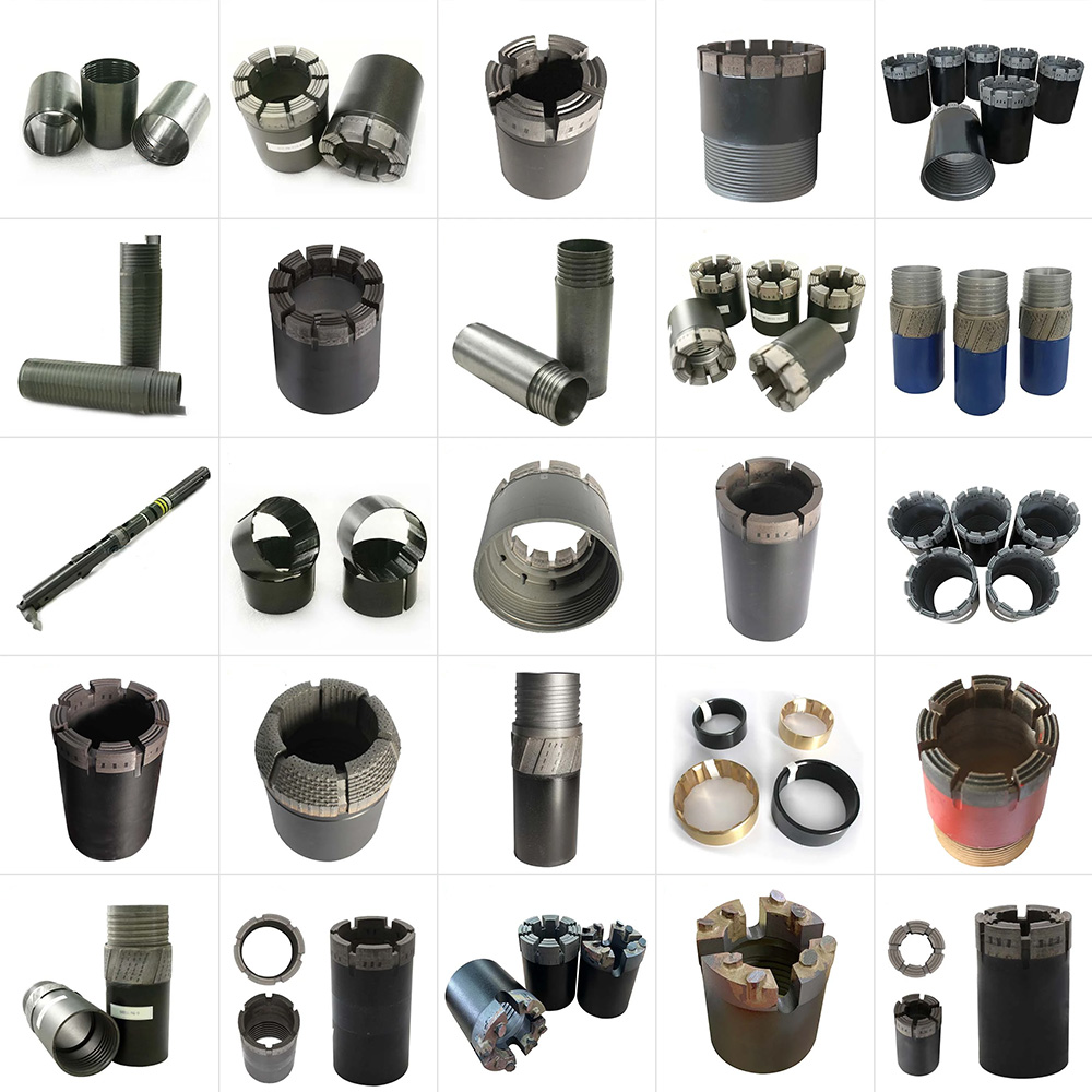 取芯钻头采用金刚石单晶或天然金刚石颗粒,经过科学配比和特别工艺加工而成,针对特硬岩体具有钻进效率高、使用寿命长等特点。根据岩层的不同,配置使用不同的胎体硬度。