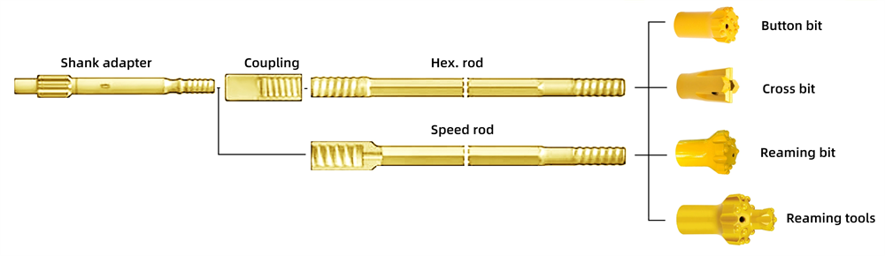 Rock drilling tools manufacturer produces shank adapters for most models of current prevailing rock drill machines. All shank adapters are carburized and made from premium steel. Thus ensure them with superior toughness and anti-fatigue strength to meet the most demanding drilling conditions. Moreover, all shanks could be produced with ether male or female threads if there is actually necessary.