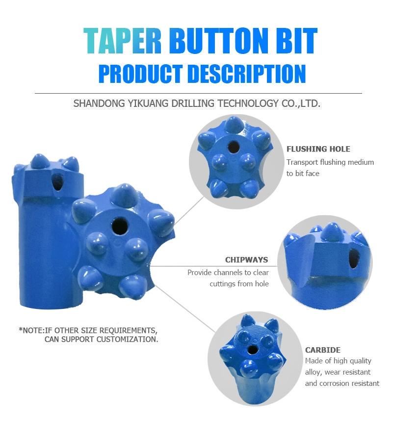 Factory offers small hole rock drill bits: Tapered Drill Bit is different with thread button bit as long hole bit to use taper match with bit rod to be used for air leg or hand held jack hammerdriller in stone quarrying, and mining.