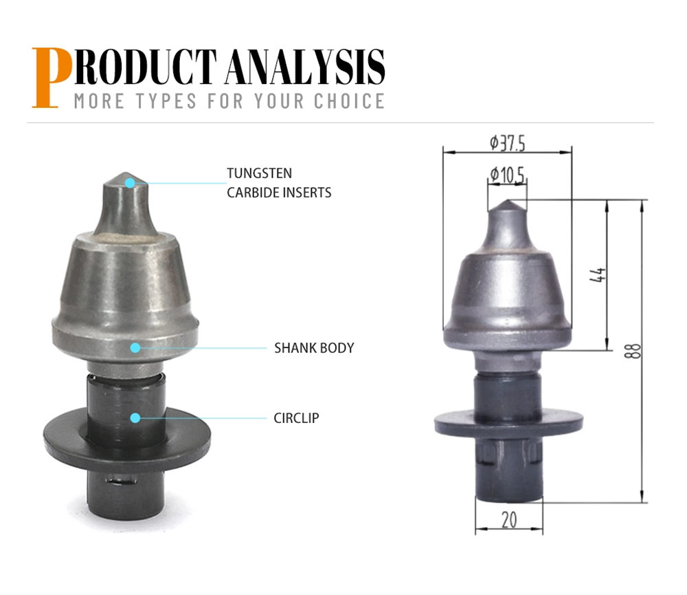 1: Carbide tip adopting the world's advanced technology to bond cobalt and tungsten carbide particles together to form strong Impact wear resistance , and increase the prolong service life of road milling bits